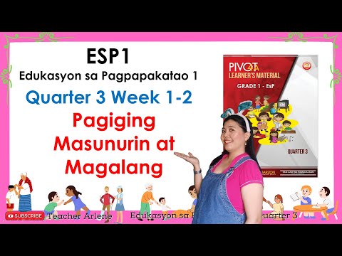 ESP 1 EDUKASYON SA PAGPAPAKATAO 1 PAGIGING MASUNURIN AT MAGALANG Grade 1 Lessons Quarter 3 https://youtube.com/playlist?list=PLO7WRQitIA5rzSI3V6ECek0LngjQLGST- Week 1 https://youtube.com/playlist?list=PLO7WRQitIA5pupVol1GDadxFv2GtZ-2-2 Week 2 https://youtube.com/playlist?list=PLO7WRQitIA5q65EHYLFC2-Lga-lvTg9mZ Week 3 https://youtube.com/playlist?list=PLO7WRQitIA5rx2EbK5BXAprTdgGWYCqXQ Week 4 https://youtube.com/playlist?list=PLO7WRQitIA5odZ1o0dtM1Ea6ws-RCEUWo Week 5 https://youtube.com/playlist?list=PLO7WRQitIA5pZZVgfn-8UyvCaJhH2MVkW Week 6 https://youtube.com/playlist?list=PLO7WRQitIA5rm8msBp5x1l80p9Q-Luwwt Week 7 https://youtube.com/playlist?list=PLO7WRQitIA5pksUzAUCBmSR9-2X3SPZhq Week 8 https://youtube.com/playlist?list=PLO7WRQitIA5o70_1KwxEMmlt0G36sEP1Y