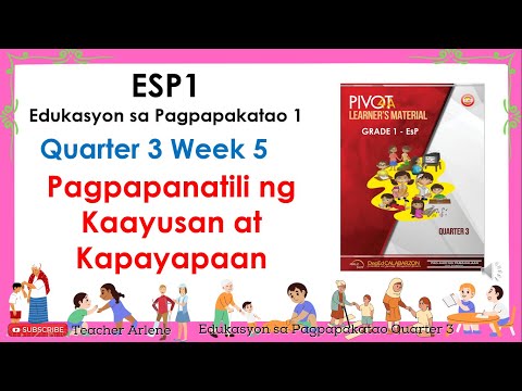 ESP 1 Week 5 Quarter 3 Pagpapanatili ng Kaayusan at Kapayapaan Grade 1 Quarter 1 Lessons per week (COMPLETE) Week 1 https://youtube.com/playlist?list=PLO7WRQitIA5rCFv7oE2GmYjf9i3R2EjUe Week 2 https://youtube.com/playlist?list=PLO7WRQitIA5qsBq_rdhu3QexagIg3BfQl Week 3 https://youtube.com/playlist?list=PLO7WRQitIA5q1QB-M3fIGA7YkrPBUPd-n Week 4 https://youtube.com/playlist?list=PLO7WRQitIA5rc4V0FgJwH2fmwqv6d_i8W Week 5 https://youtube.com/playlist?list=PLO7WRQitIA5rufzUEbgA4_aKkARSFSWos Week 6 https://youtube.com/playlist?list=PLO7WRQitIA5qLSAdHNpg5CV-g8uLy5p38 Week 7 https://youtube.com/playlist?list=PLO7WRQitIA5pednDICjXT733MnMX7p1iu Week 8 https://youtube.com/playlist?list=PLO7WRQitIA5pueUoSpzTq3dm5Eu9NkJXo Grade 1 Quarter 2 Lessons per week (COMPLETE) Week 1 https://youtube.com/playlist?list=PLO7WRQitIA5pqqzoSqzQmt-uXIKJYlZ3x Week 2 https://youtube.com/playlist?list=PLO7WRQitIA5pSSkhJ5Ykwyv8kjiy7UfSy Week 3 https://youtube.com/playlist?list=PLO7WRQitIA5pJnYnE2ov79sAY9Ze8xQt3 Week 4 https://youtube.com/playlist?list=PLO7WRQitIA5rL-qgPzKPuELtTVT4PD8q3 Week 5 https://youtube.com/playlist?list=PLO7WRQitIA5rcOuVgOjOlWhtZdSU1rPbU Week 6 https://youtube.com/playlist?list=PLO7WRQitIA5qt_yOiNlD4obBky1f_Gb6V Week 7 https://youtube.com/playlist?list=PLO7WRQitIA5o_r9XR_2BgSmqKwKanja7T Week 8 https://youtube.com/playlist?list=PLO7WRQitIA5pl7aeOQNR4b3nJF8WsVwQD Grade 1 Quarter 3 Lessons per week Week 1 https://youtube.com/playlist?list=PLO7WRQitIA5pupVol1GDadxFv2GtZ-2-2 Week 2 https://youtube.com/playlist?list=PLO7WRQitIA5q65EHYLFC2-Lga-lvTg9mZ Week 3 https://youtube.com/playlist?list=PLO7WRQitIA5rx2EbK5BXAprTdgGWYCqXQ Week 4 https://youtube.com/playlist?list=PLO7WRQitIA5odZ1o0dtM1Ea6ws-RCEUWo Week 5 https://youtube.com/playlist?list=PLO7WRQitIA5pZZVgfn-8UyvCaJhH2MVkW Week 6 https://youtube.com/playlist?list=PLO7WRQitIA5rm8msBp5x1l80p9Q-Luwwt Week 7 https://youtube.com/playlist?list=PLO7WRQitIA5pksUzAUCBmSR9-2X3SPZhq Week 8 https://youtube.com/playlist?list=PLO7WRQitIA5o70_1KwxEMmlt0G36sEP1Y Grade 1 Quarter 4 Lessons per week Week 1 https://youtube.com/playlist?list=PLO7WRQitIA5obh1lP0RkB1TEXLywwhX_6 Week 2 https://youtube.com/playlist?list=PLO7WRQitIA5pvxU_Cu5GTh1W0BTiqSJdj Week 3 https://youtube.com/playlist?list=PLO7WRQitIA5rVSq3rQ5Xrn-Ynud3bOfEz Week 4 https://youtube.com/playlist?list=PLO7WRQitIA5p0wUn1bV4o1auEa80msFNV Week 5 https://youtube.com/playlist?list=PLO7WRQitIA5plBF0Nqa3ka2GZ4Gf7dTVE Week 6 httpsp://youtube.com/playlist?list=PLO7WRQitIA5pmOoyU9vgcImIynSKe9MWR Week 7 Week 8 https://youtube.com/playlist?list=PLO7WRQitIA5rgRuA7y9wOxr7hOWBCUl9N