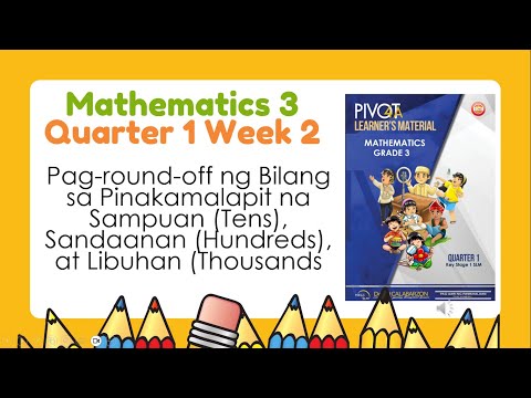 Mathematics 3 Quarter 1 Week 2 Pag round off ng Bilang sa Pinakamalapit na Sampuan Tens, Sandaanan H *EDITABLE PPT AVAILABLE from Kinder to Grade 6 *PM ME @https://ift.tt/2n7w1TS *you can also shop @ https://ift.tt/6OduLZX with 30% off on all items Kinder Quarter 1 : https://youtube.com/playlist?list=PLO7WRQitIA5rQccGFSunGUZRUdfEXToPo&si=ME1rx4sS_v9yRAG7 Grade 1 Quarter 1: https://youtube.com/playlist?list=PLO7WRQitIA5qHrmsgc__QpaUO88dFvTFi&si=R3nupajvei7ct-TW Grade 2 Quarter 1: https://youtube.com/playlist?list=PLO7WRQitIA5rCHsRQsJiI7mwmfZBJQpkK&si=rKo2PHbfqAsSCLHm Grade 3 Quarter 1: https://youtube.com/playlist?list=PLO7WRQitIA5oF8AmXFWn8aAD7MYsdvISF&si=4SOdYLcfTxAbRhJv Grade 4 Quarter 1: Grade 5 Quarter 1: Grade 6 Quarter 1: